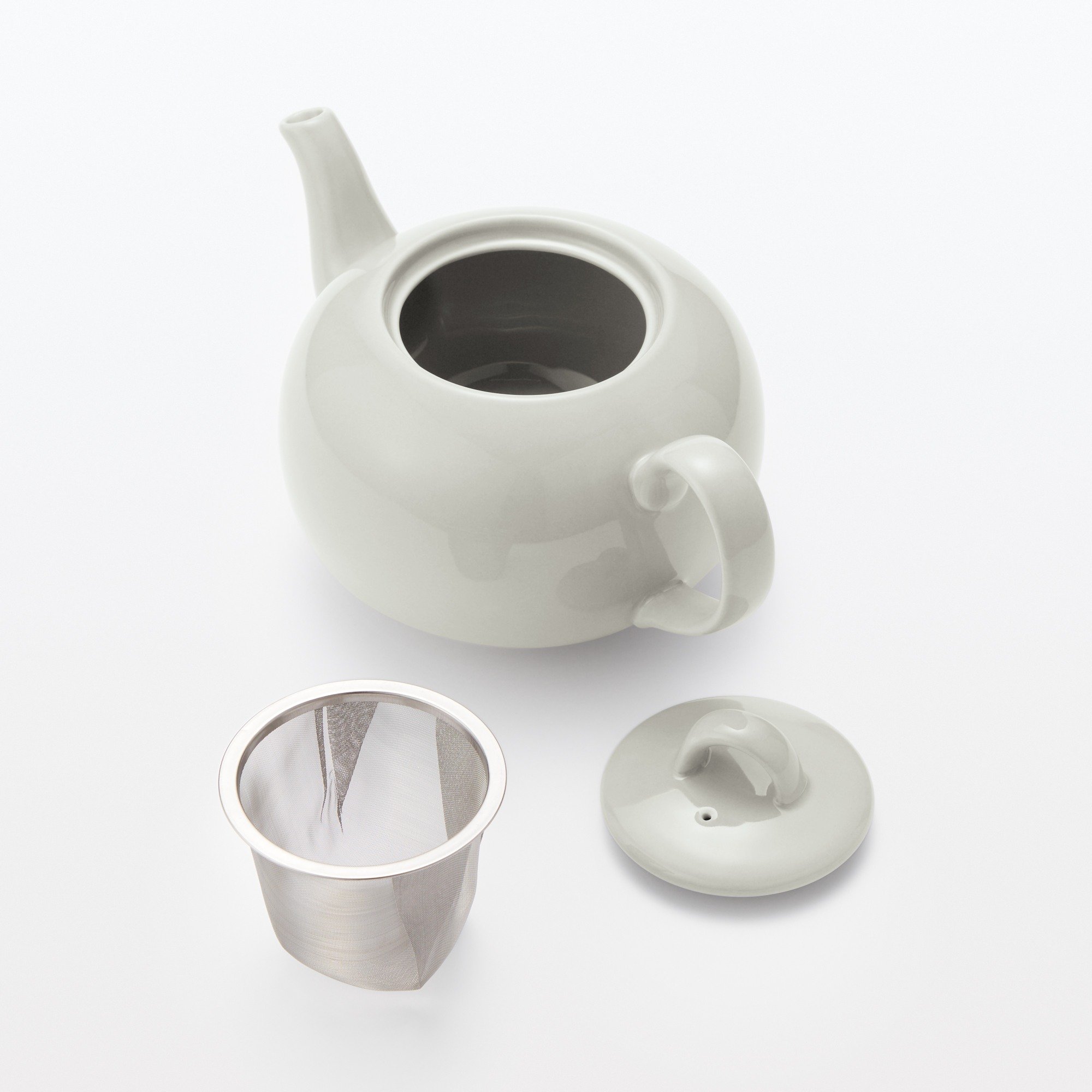A porcelain teapot with a unique rounded shape that can be used everyday or formal occasions. The handle is designed so the thumb and index finger fit in a well-balanced manner, making it more stable and easy to hold.