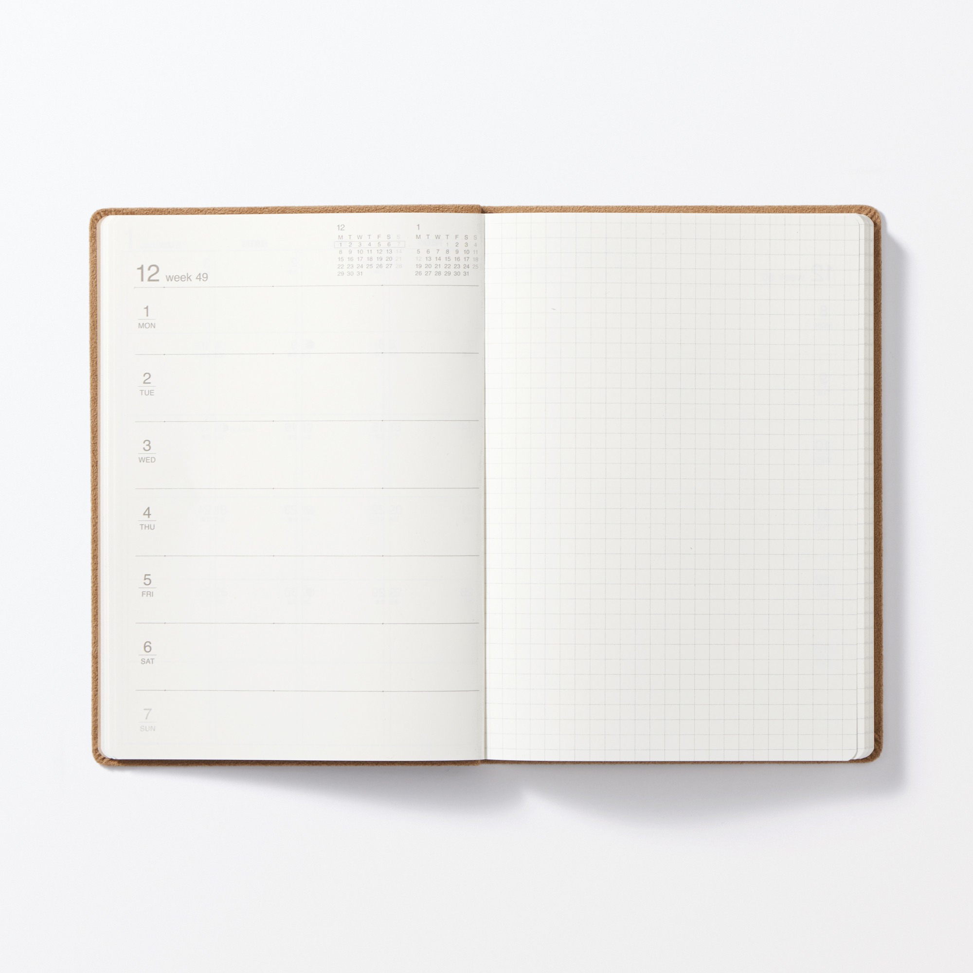 Faux suede Monday start Month/Weekly planner From Dec. 2025
