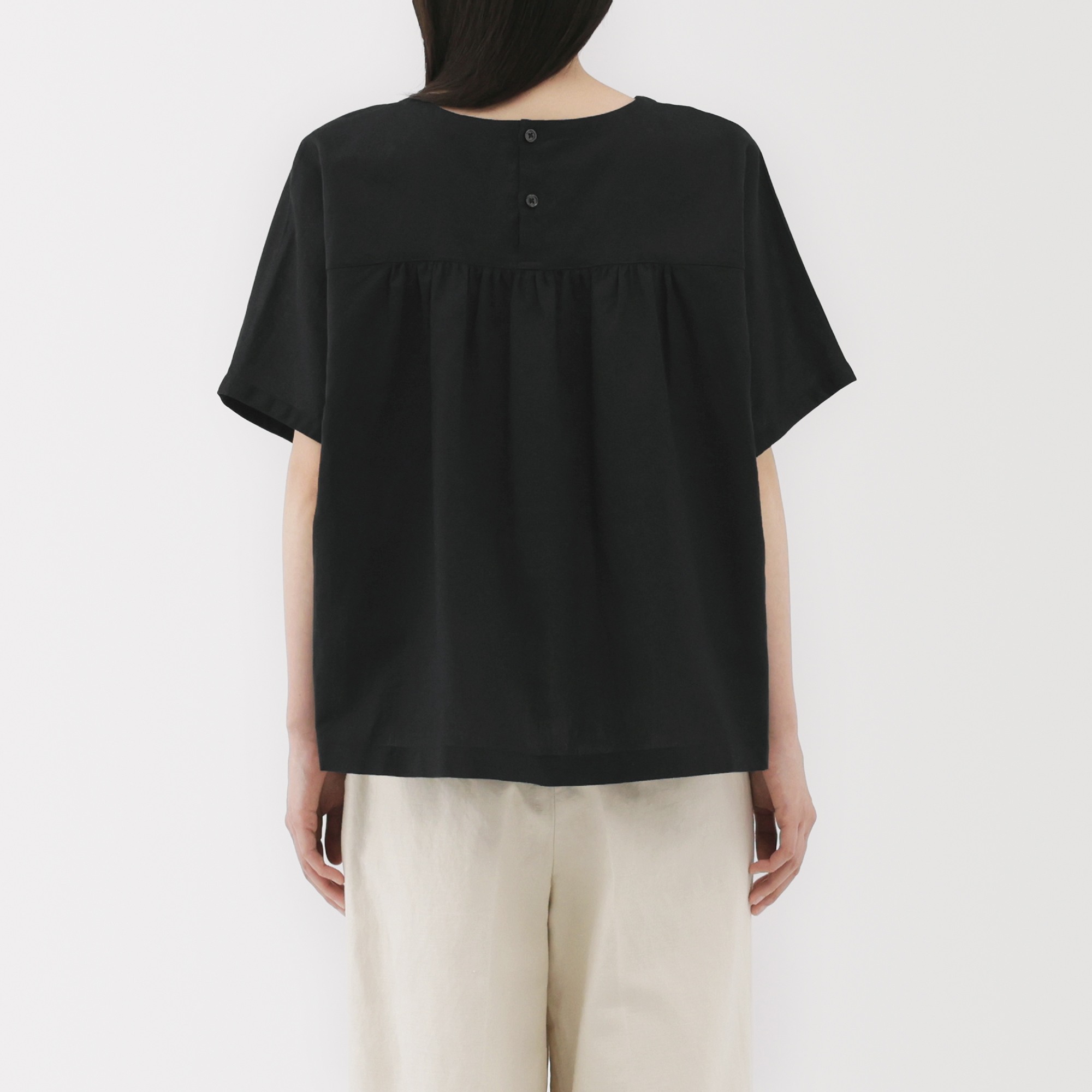 A short sleeve blouse made from a blend of hemp and cotton. The loose silhouette and lightweight, breathable fabric will keep you feeling cool and comfortable, even on hot summer days.