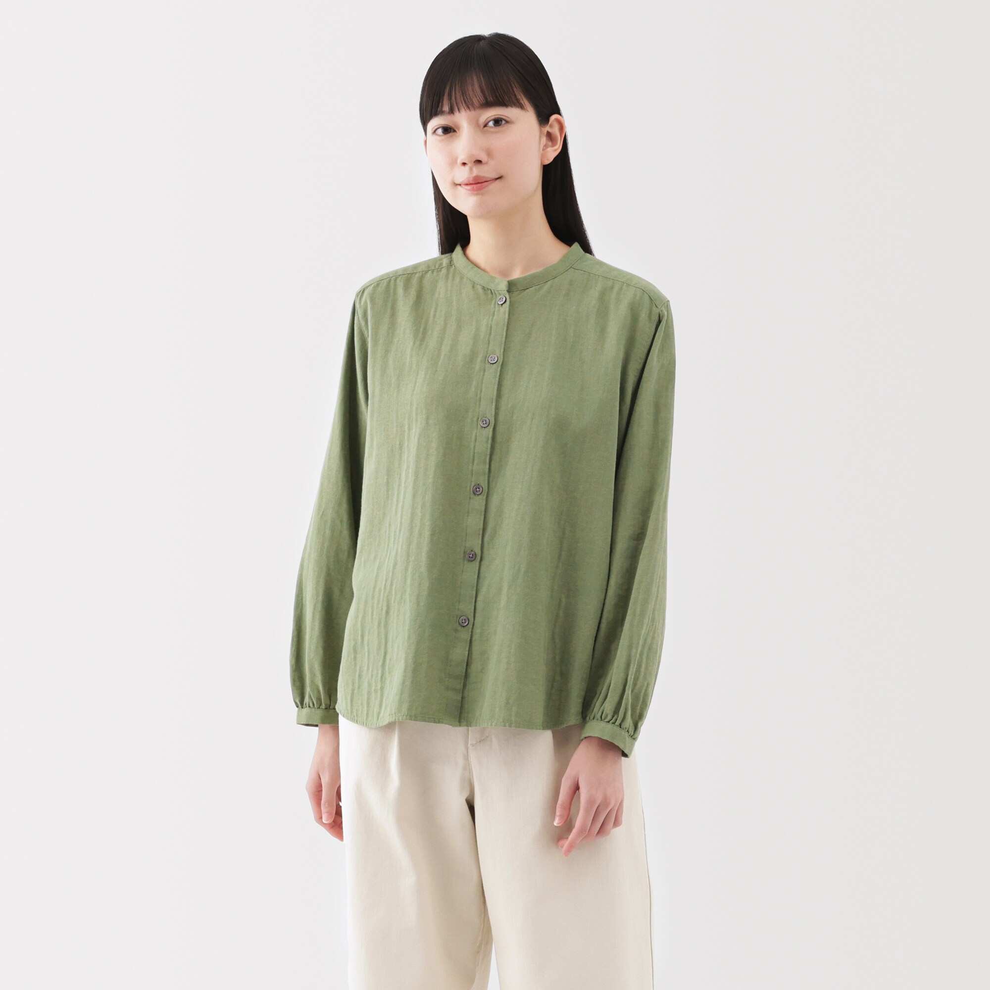 Kapok blend double gauze Long Sleeve blouse