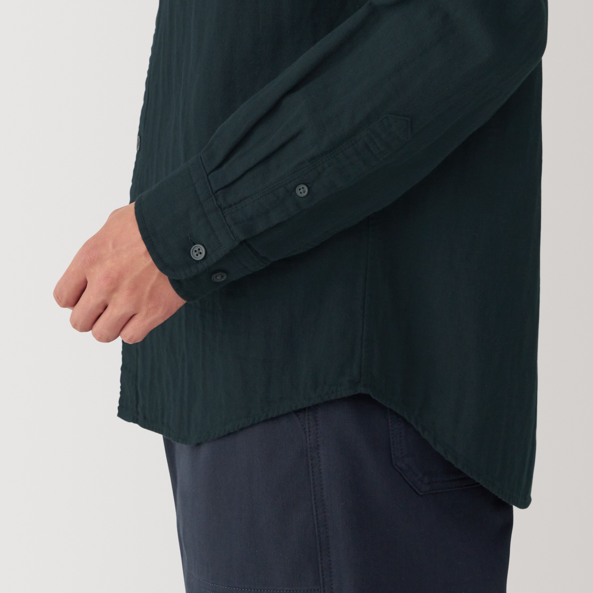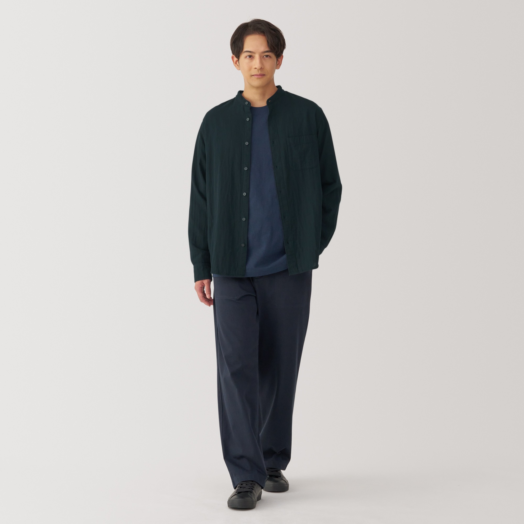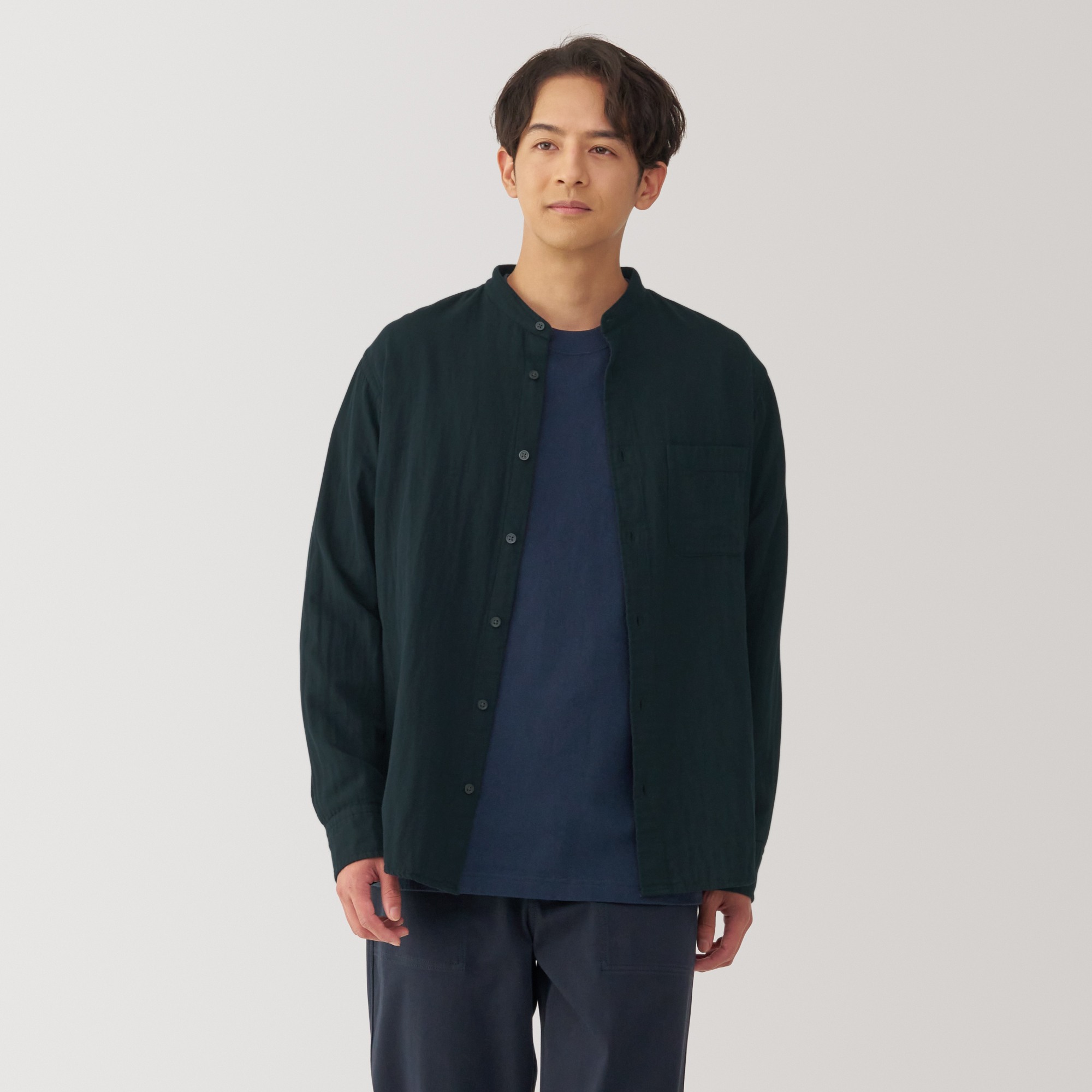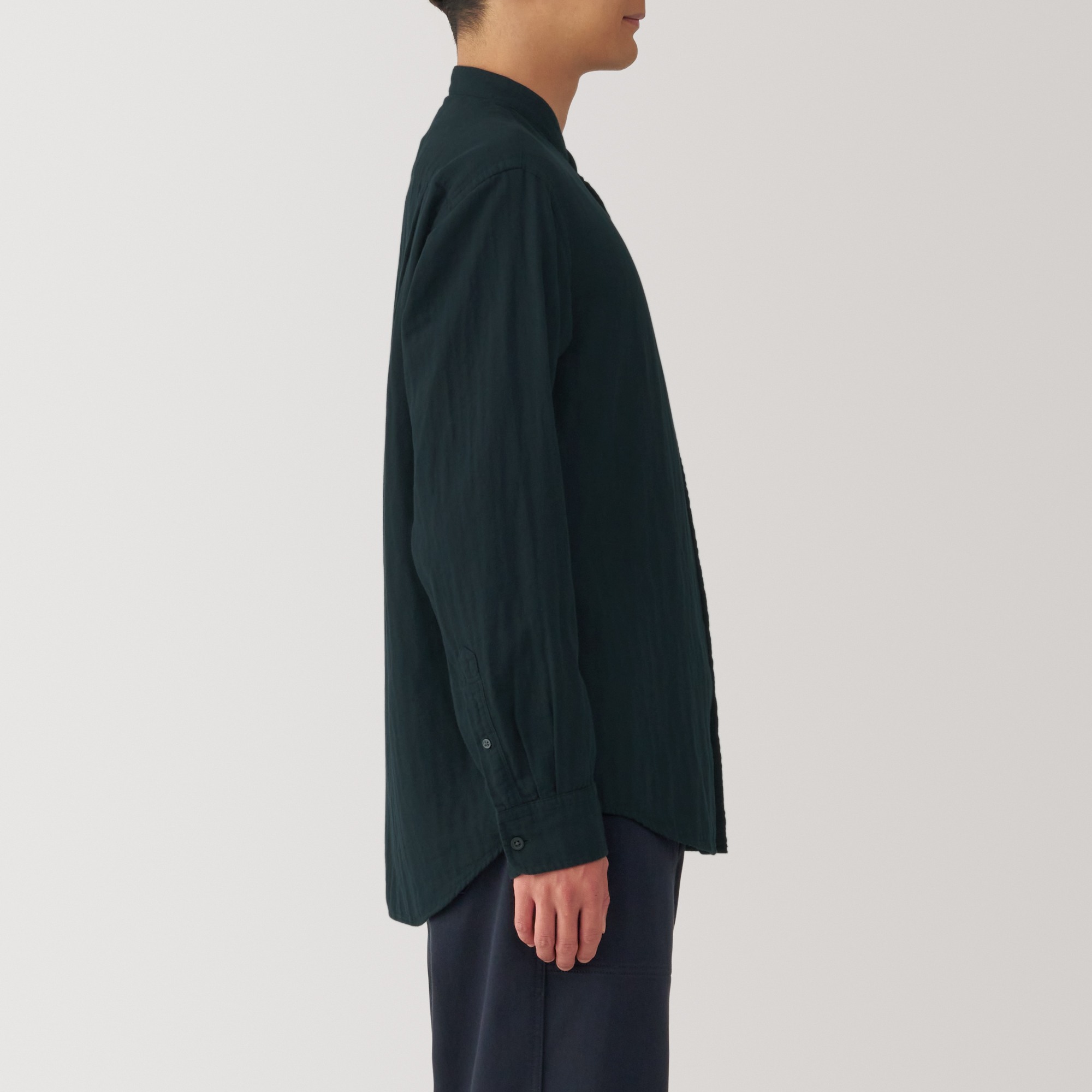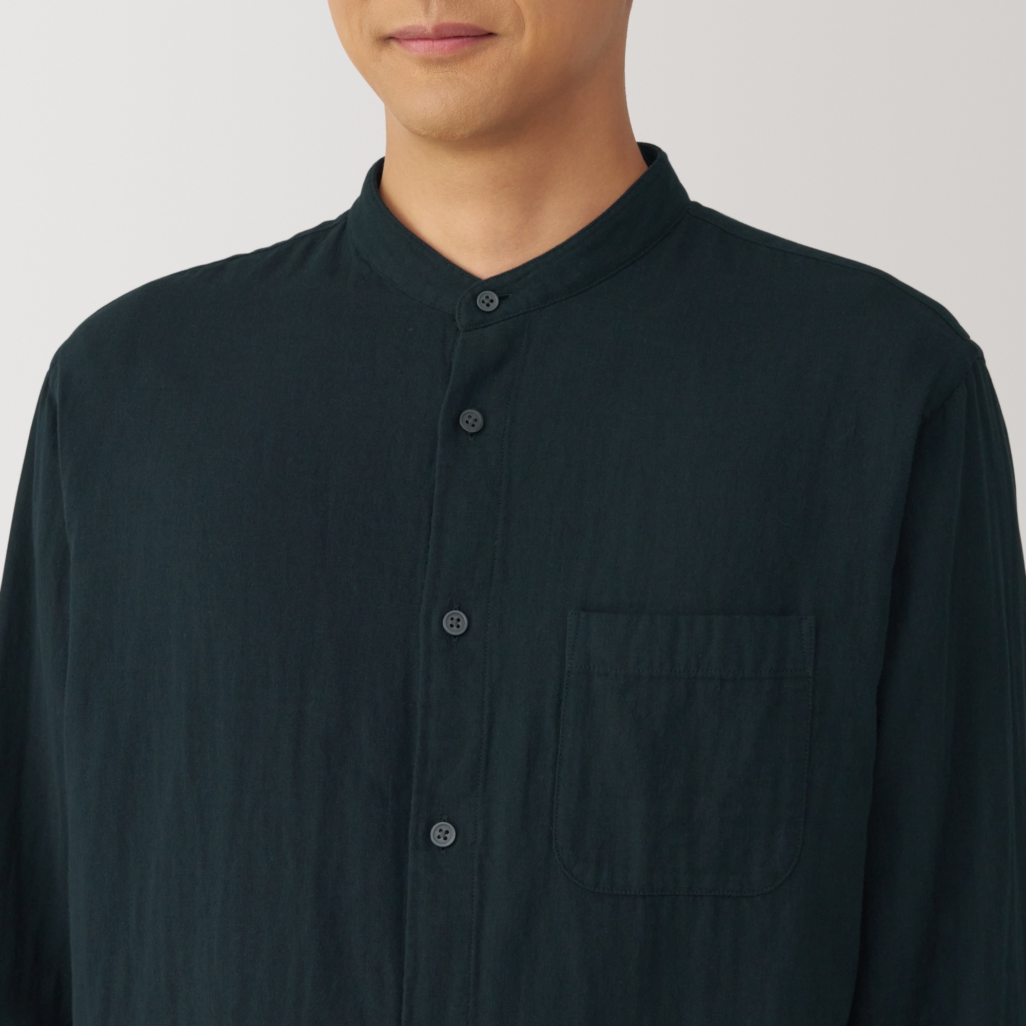 Kapok blended double gauze stand collar Long Sleeve shirt
