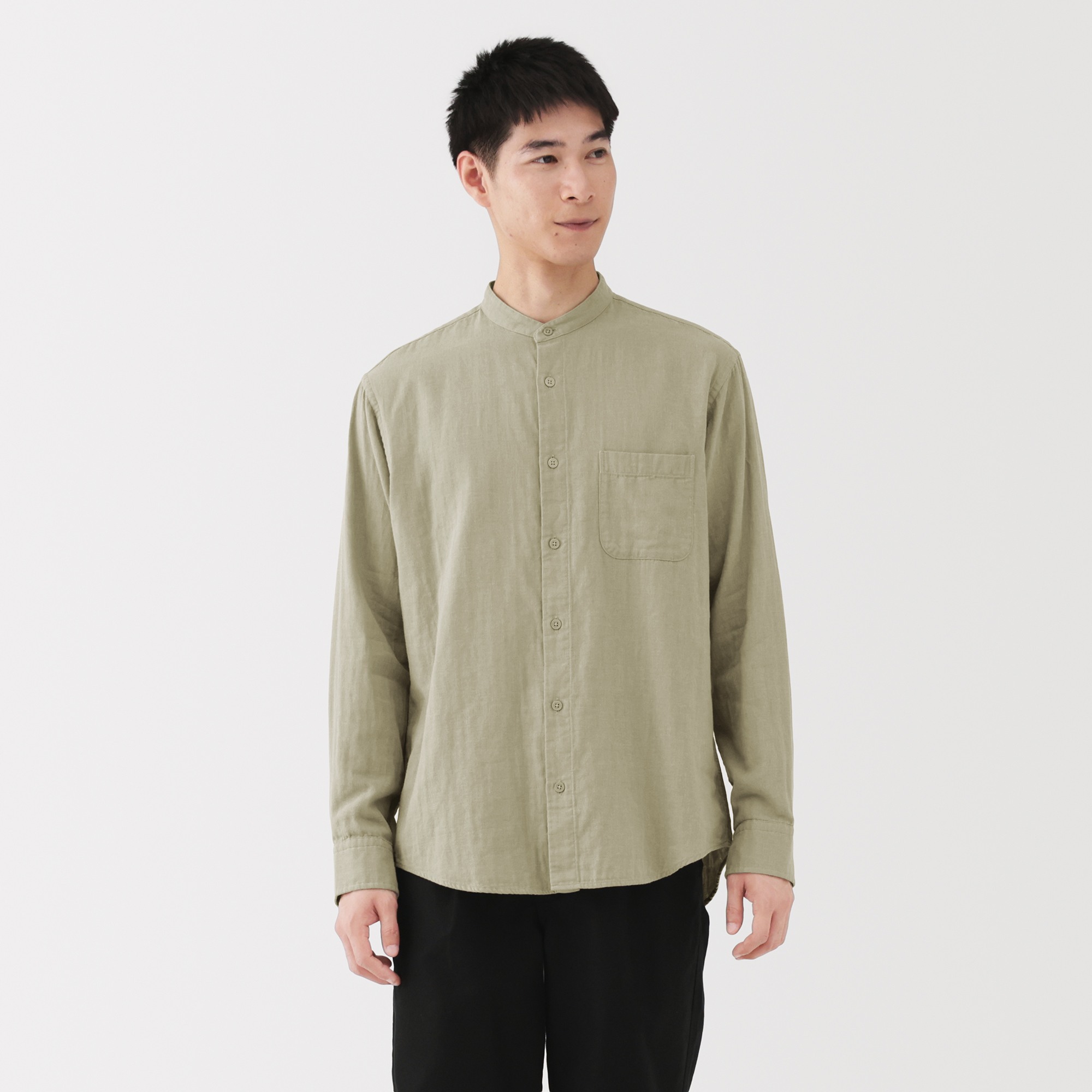 M's Kapok blended double gauze stand collar L/Slv shirt (OS)