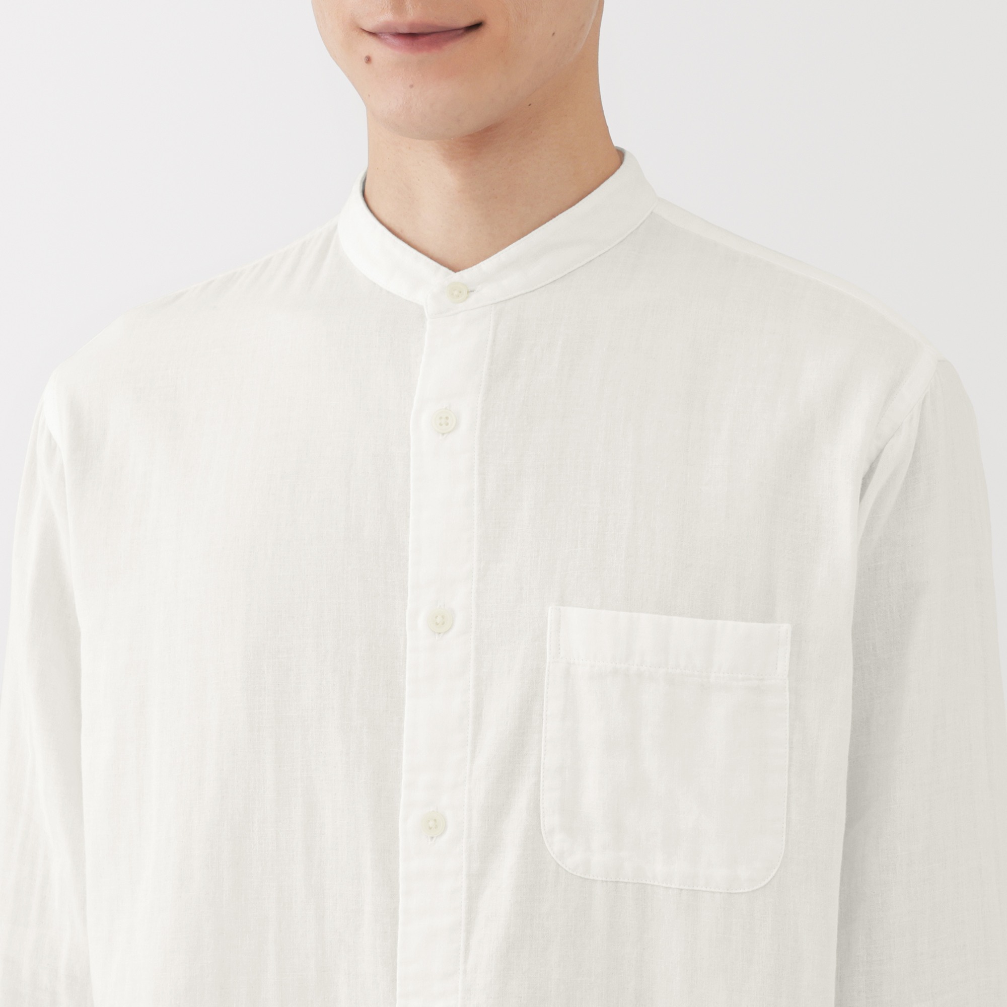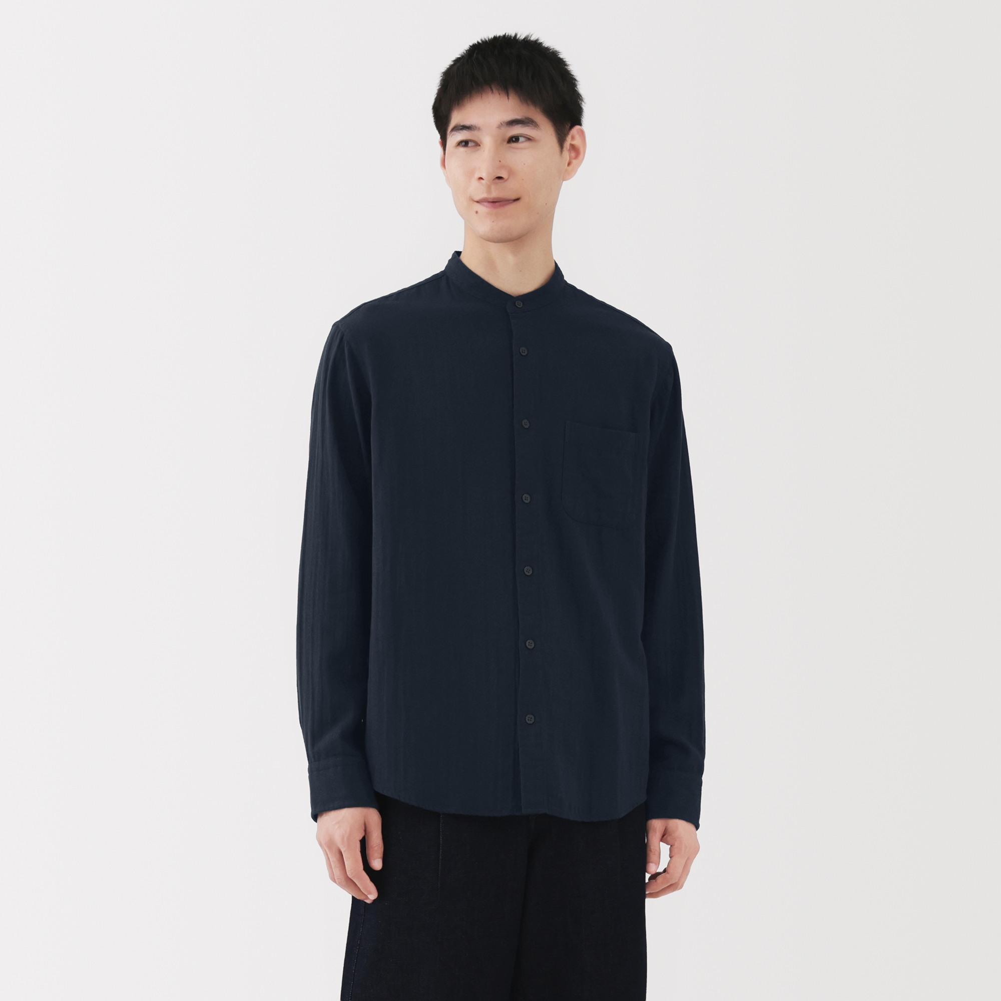 M's Kapok blended double gauze stand collar L/Slv shirt (OS)