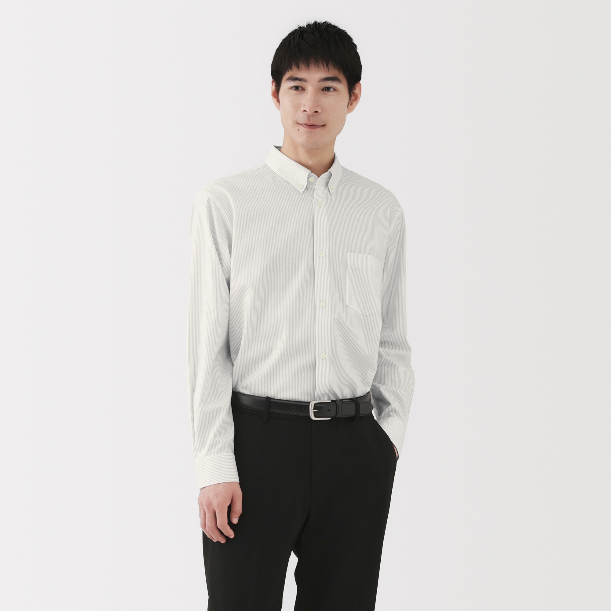 Long-sleeve shirt with a button-down collar, crafted from non-iron fabric for easy care. Soft and lightweight, it keeps a neat, crisp appearance for work or casual wear.