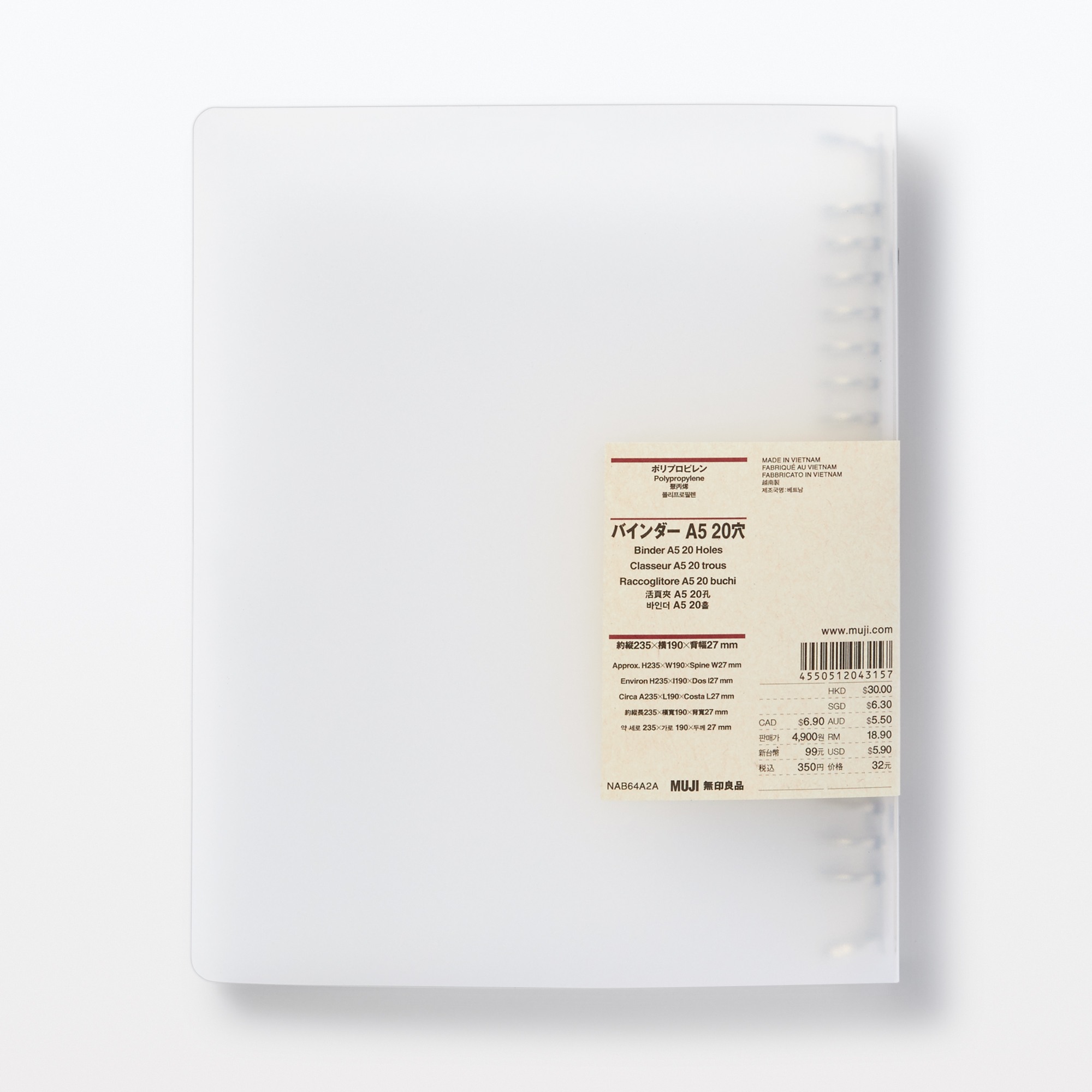 Polypropylene binder A5 20 Holes