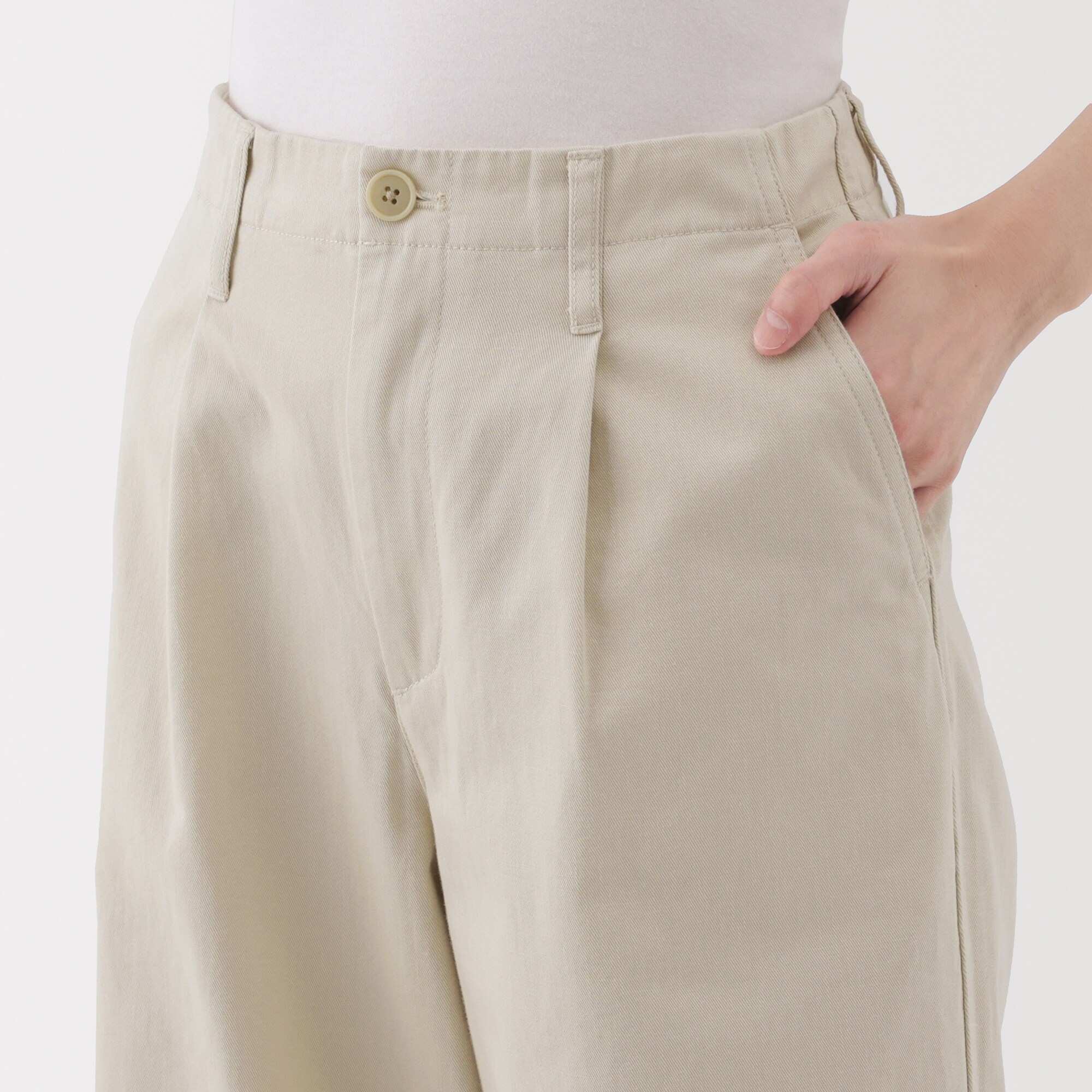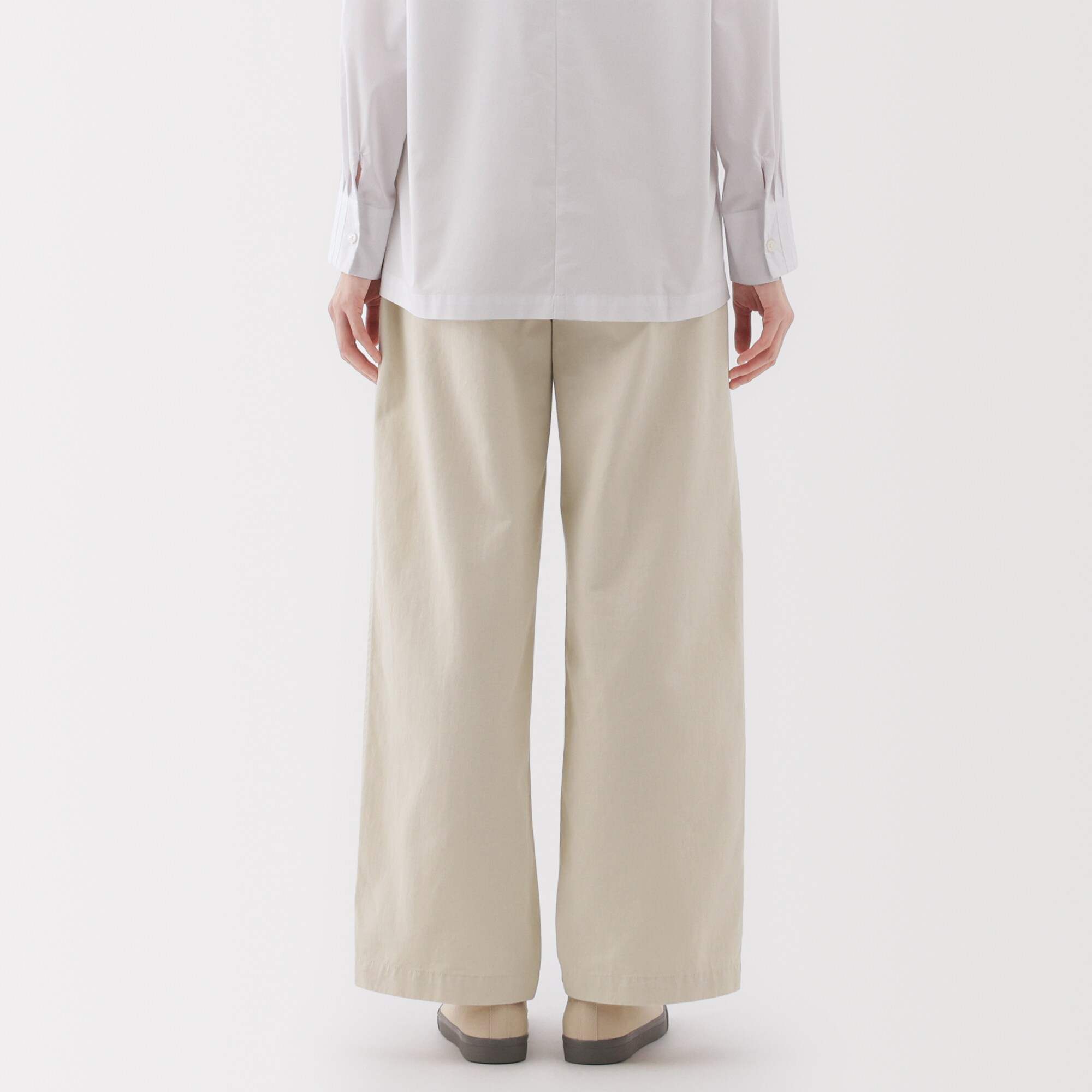 W's Slub yarn chino Darted wide pants (long)