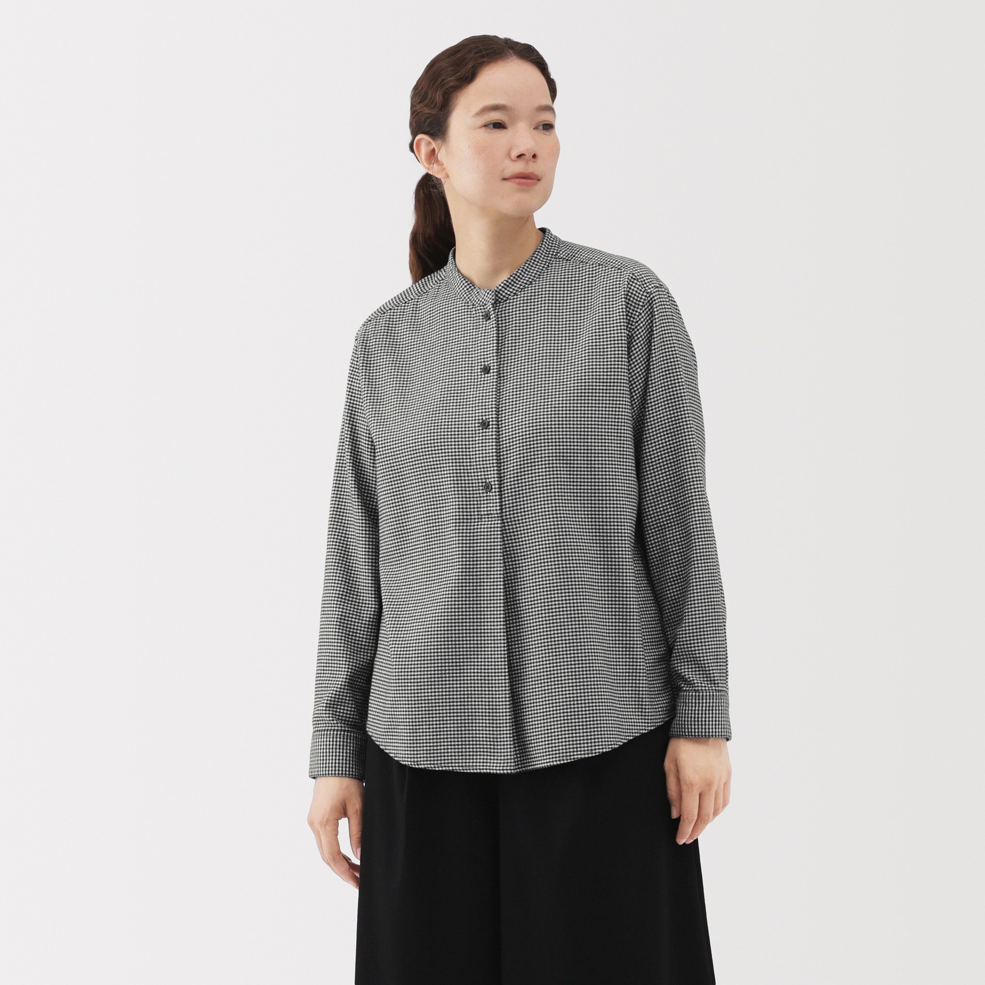 W's Double-brushed flannel stand collar L/Slv blouse