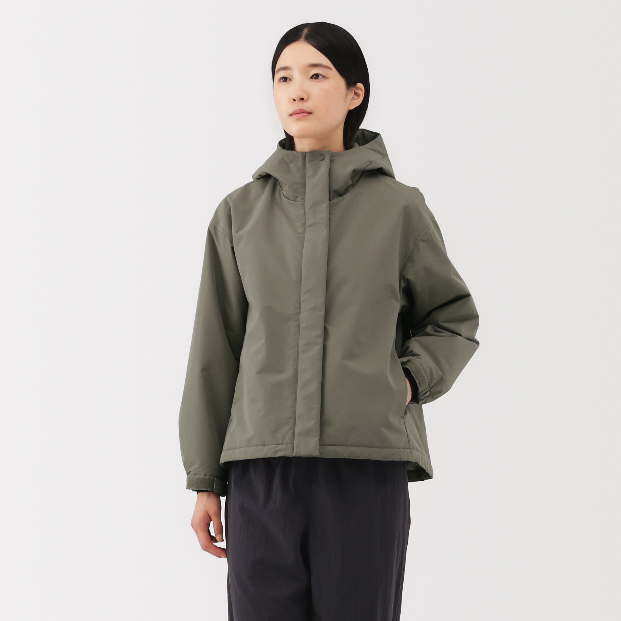 OUTER SHELL:POLYESTER100%,(POLYURETHANE RESIN USED ON REVERSE SIDE)FILLING:POLYESTER100%,LINING:POLYESTER100%