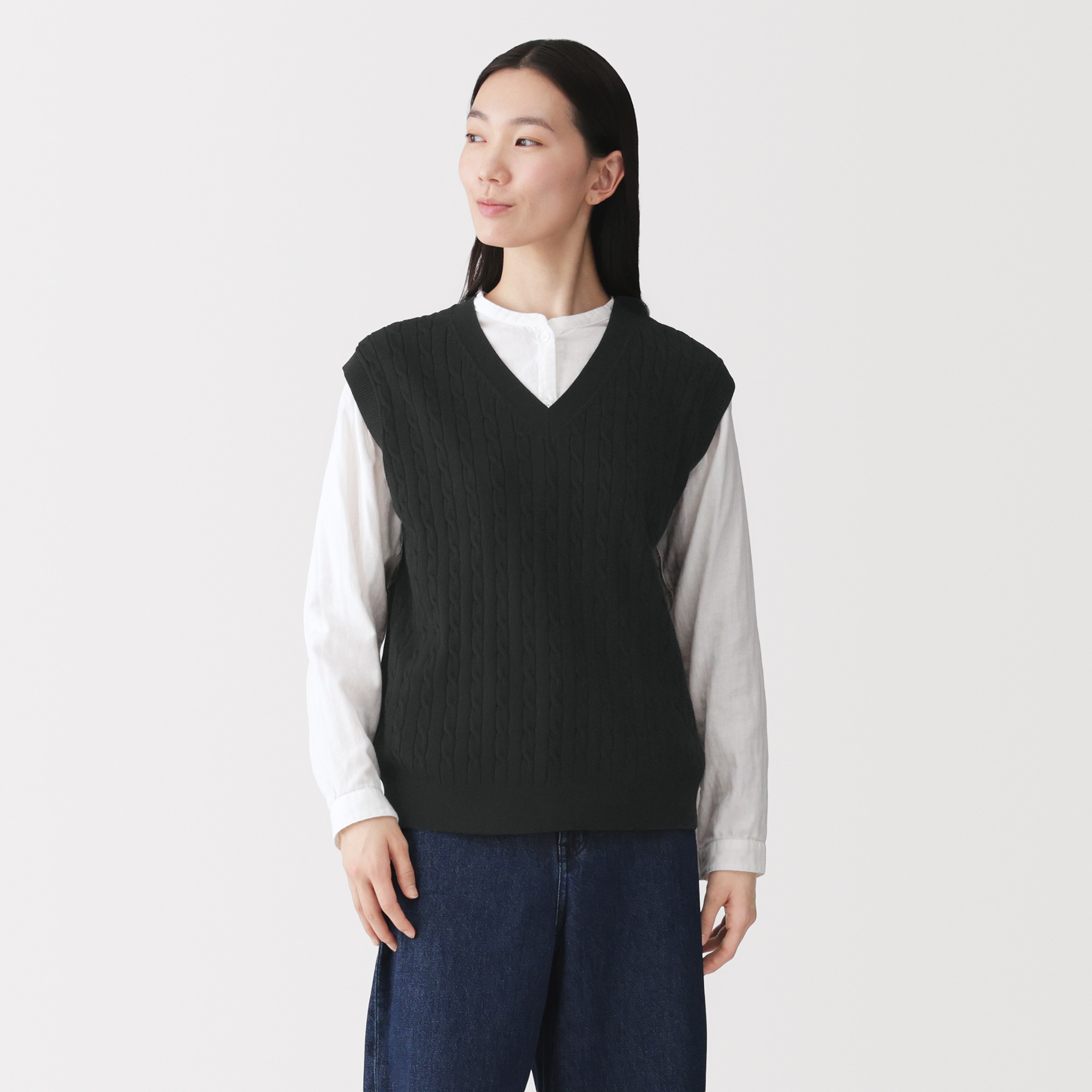 W's Washable cable patterned vest