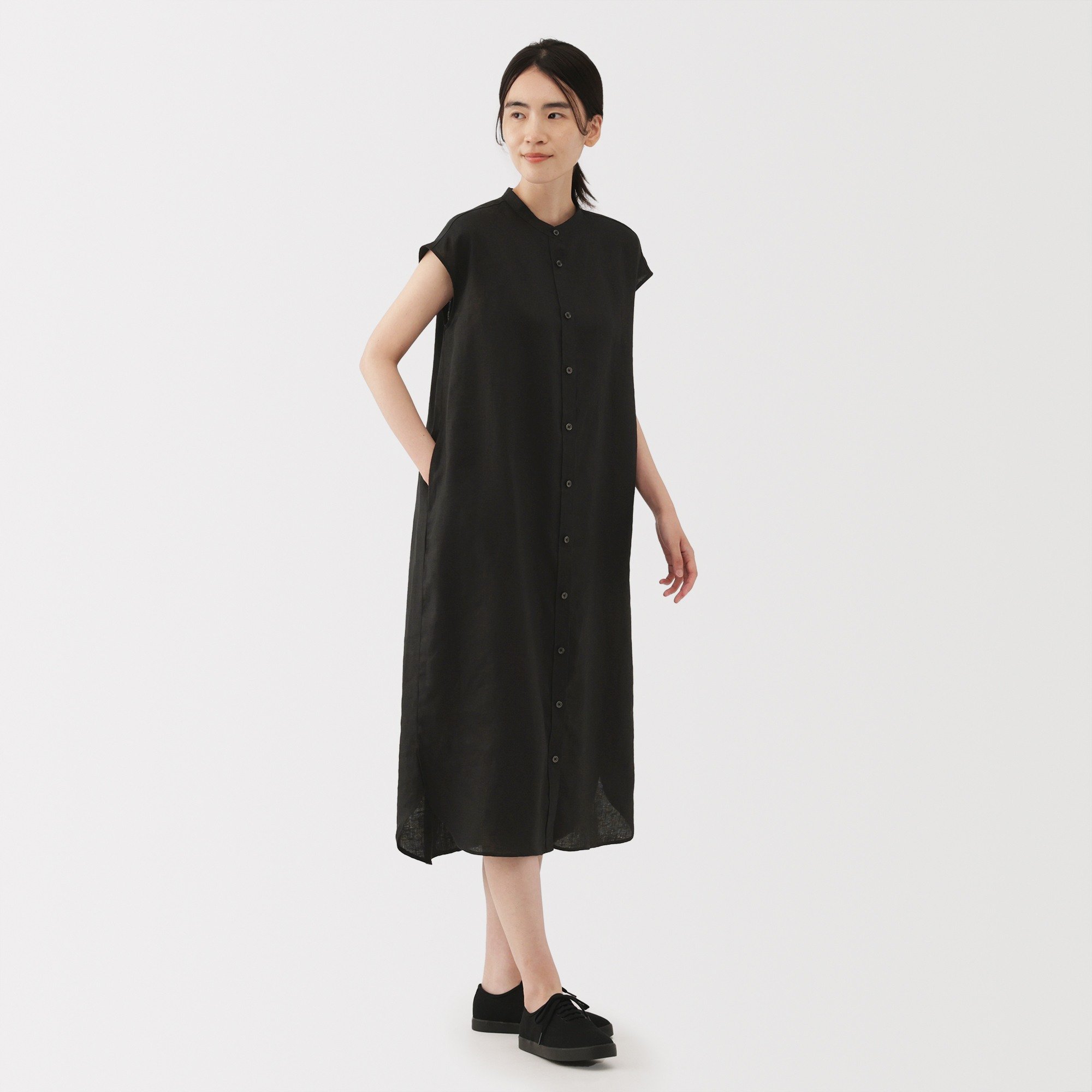 W's Washed linen French sleeve dress (ASEAN)