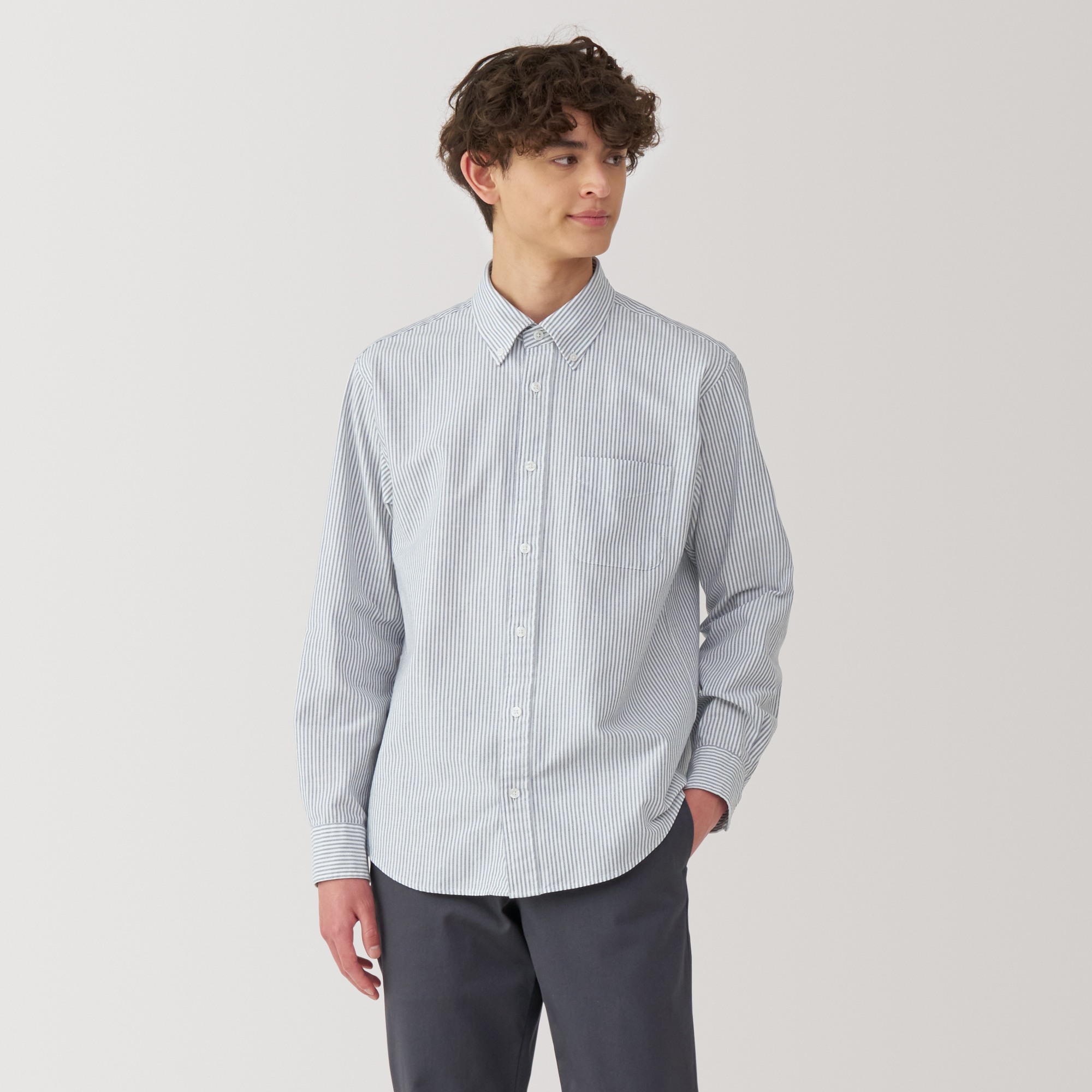 M's Washed oxford button down L/Slv shirt