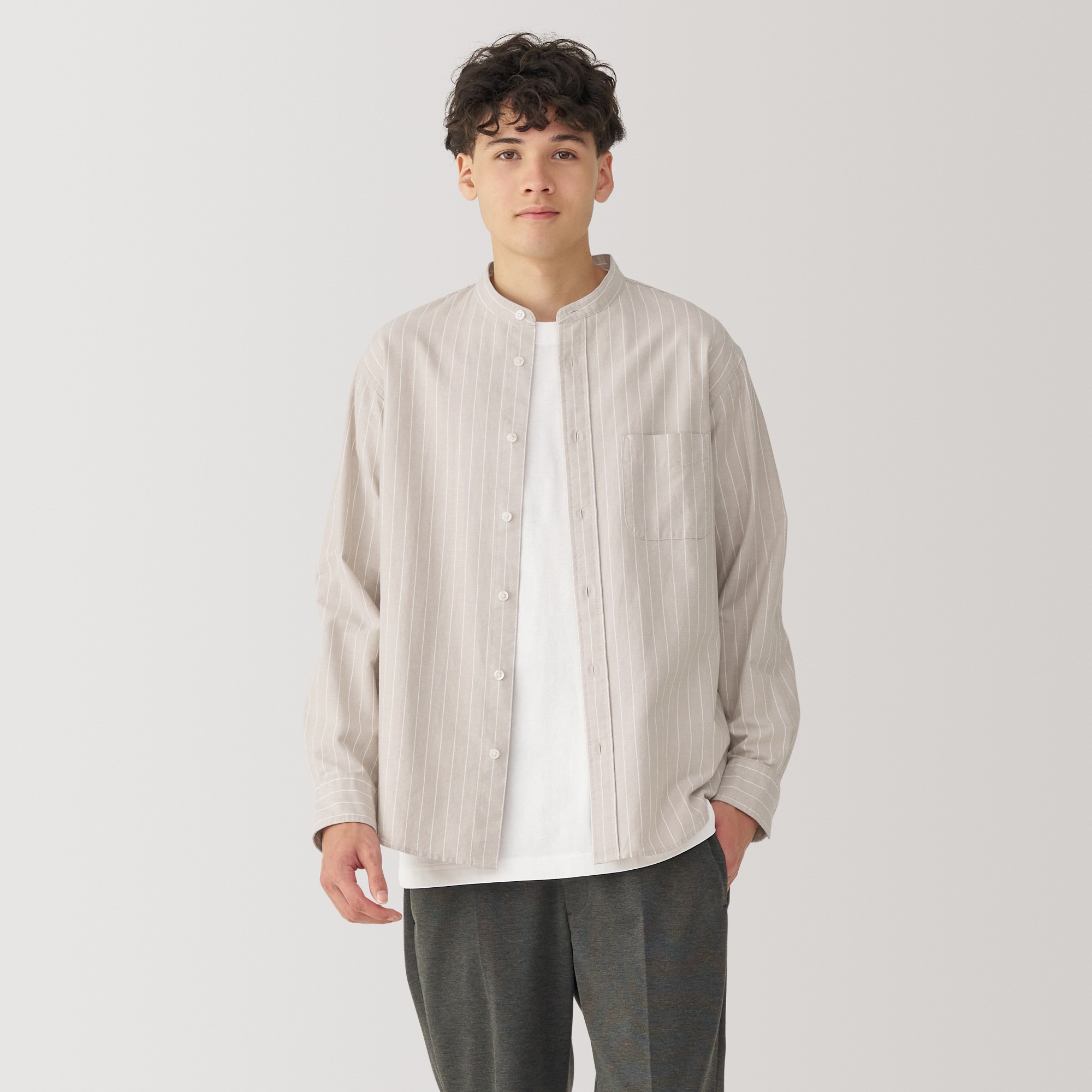 M's Washed oxford stand collar L/Slv shirt
